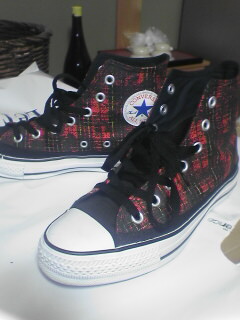 新しく買った靴はコンバースの赤チェック柄スニーカー!ヽ(´●')